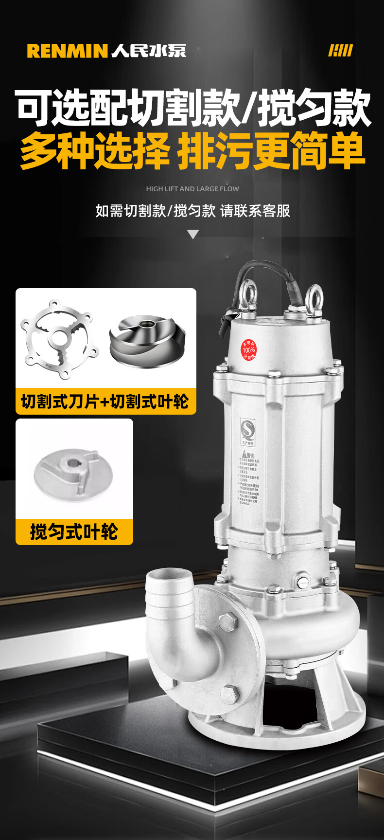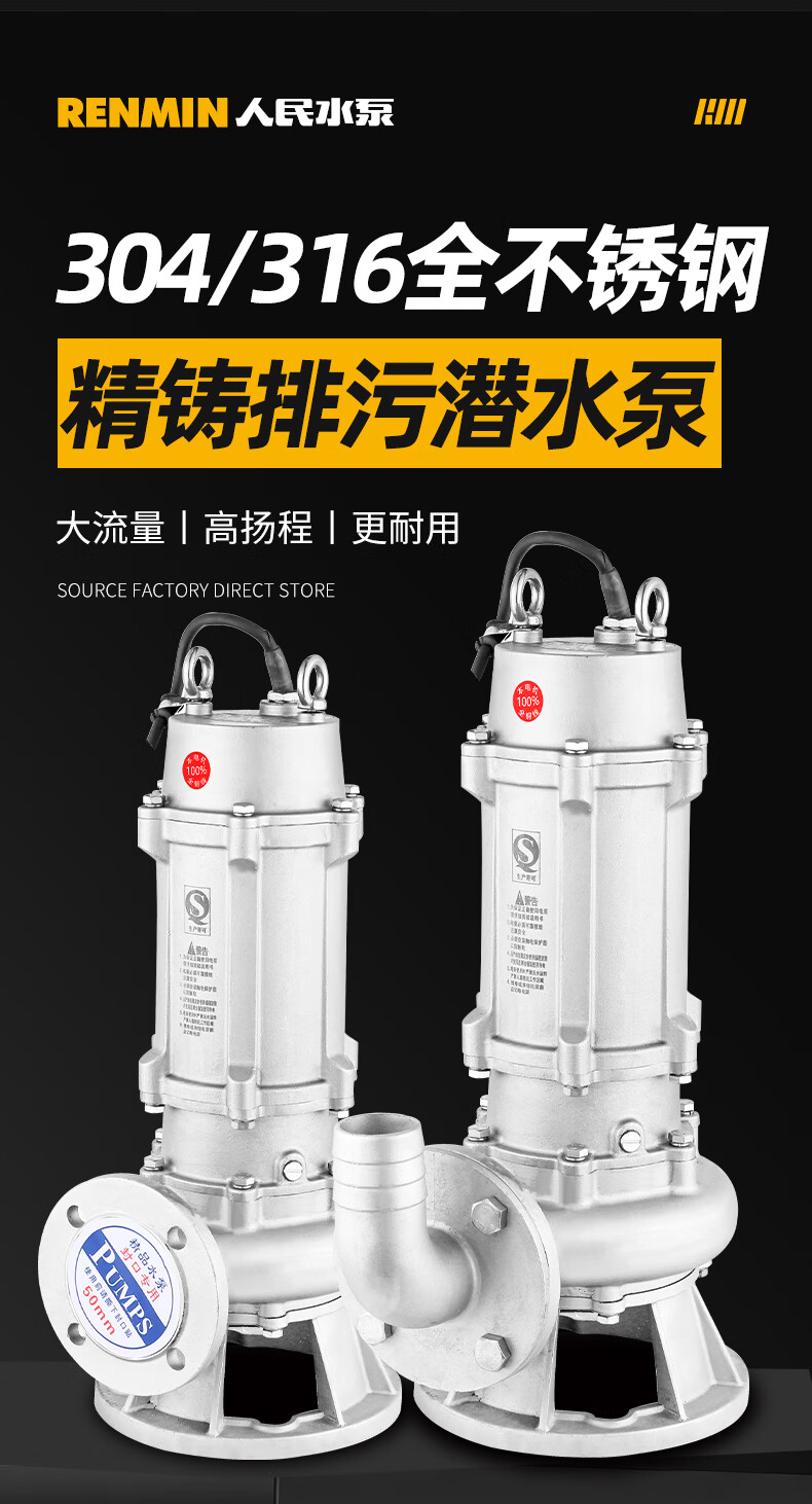 - Nombre del producto: Bomba de agua para aguas residuales de fundición de precisión de acero inoxidable 304 de People's Water Pump