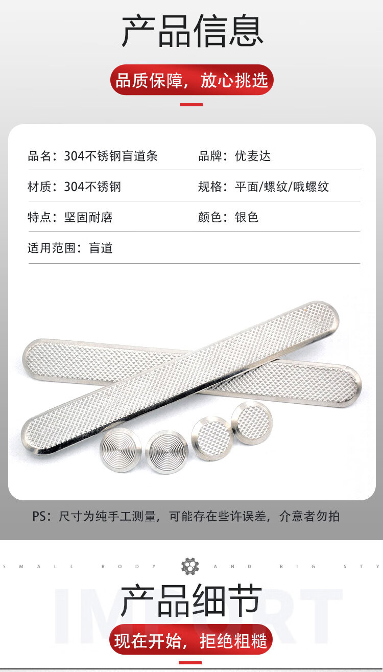 - Nombre del producto: Tiras de pavimento táctiles de acero inoxidable 304 Youmaida