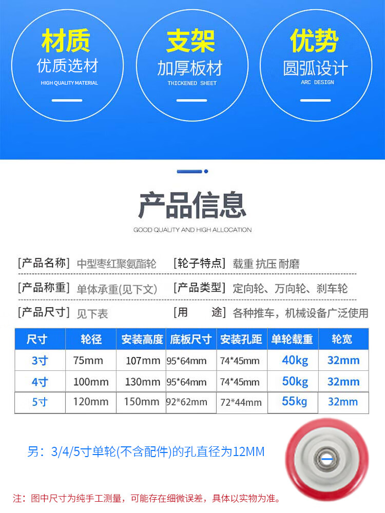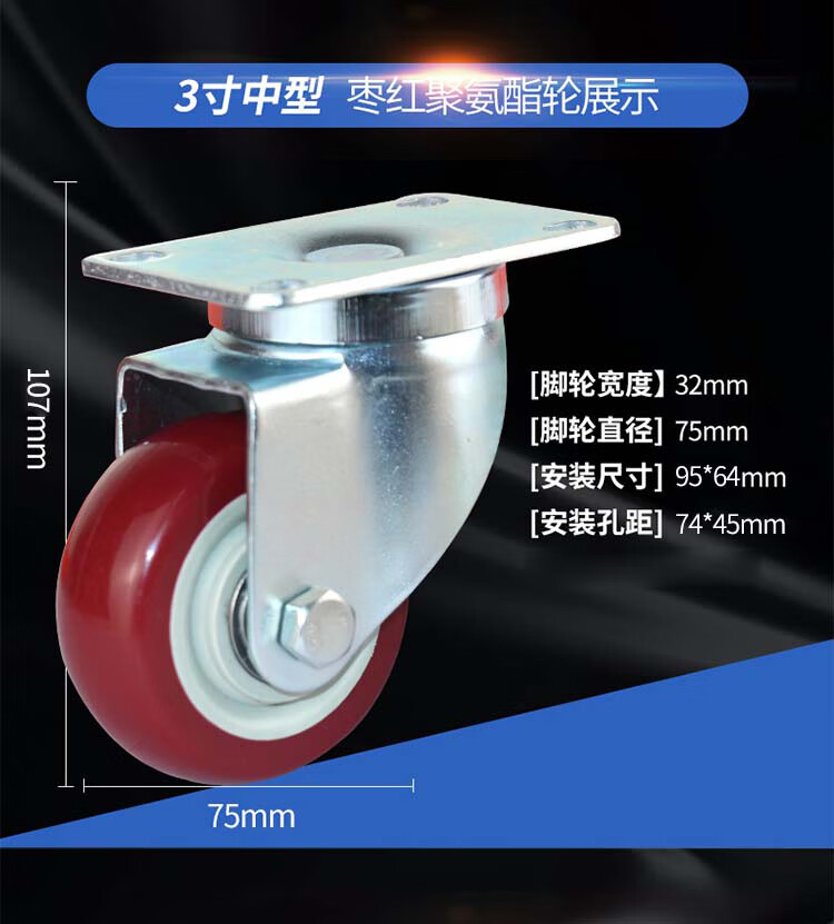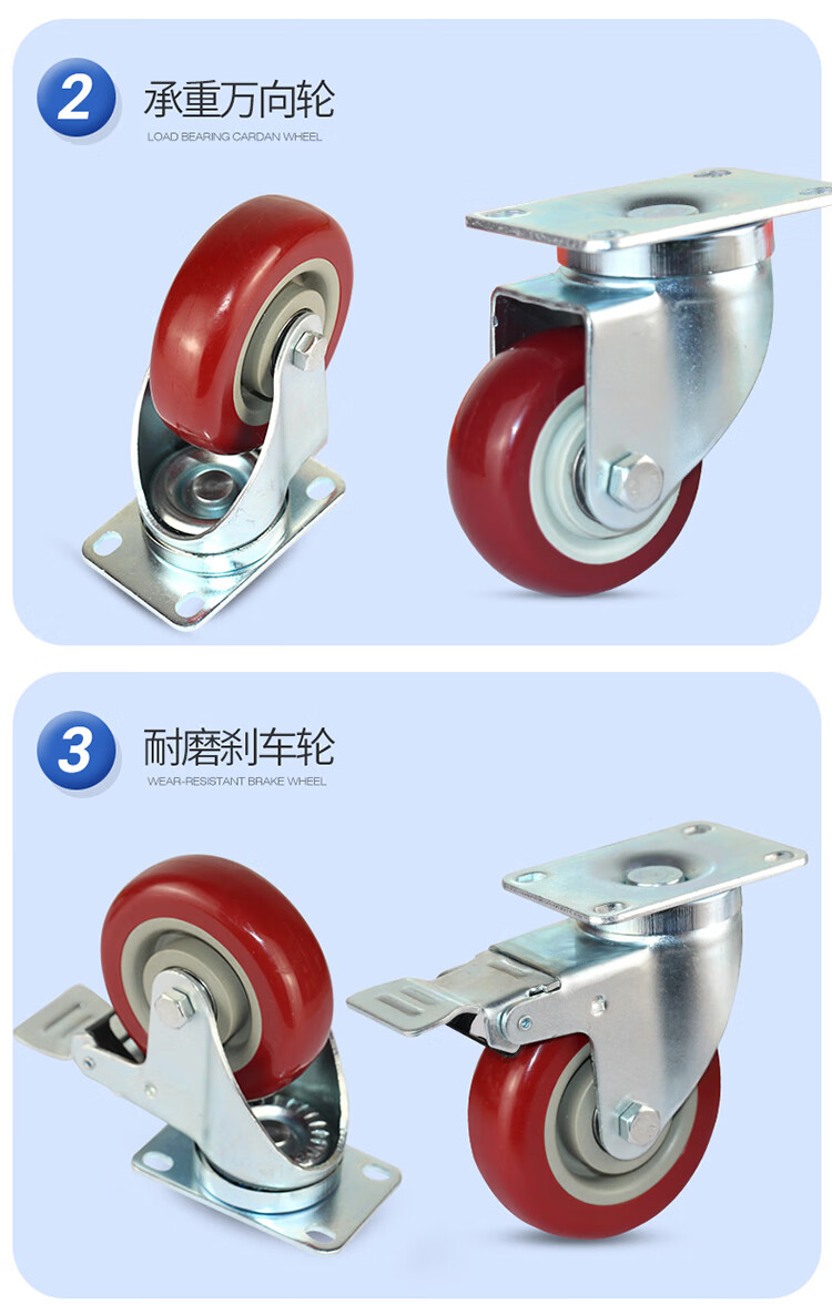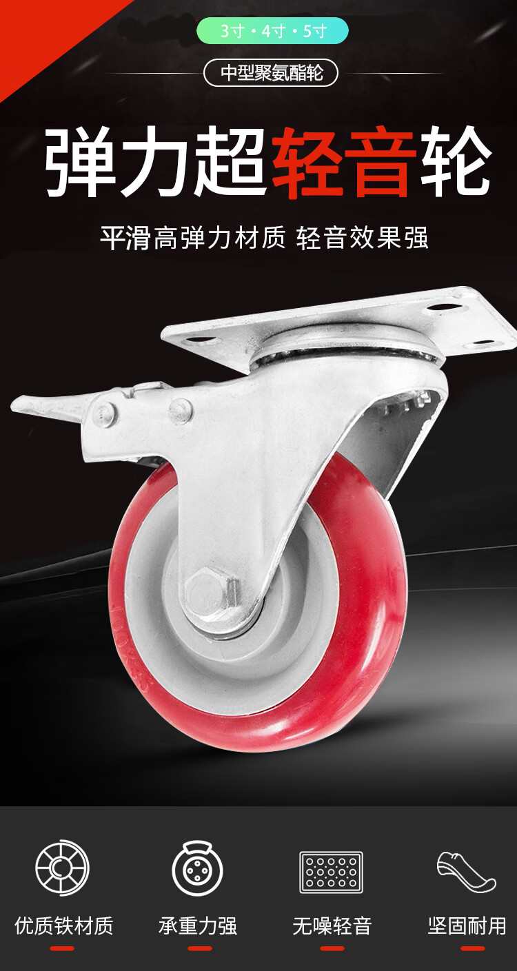 - Nombre del producto: Ruedas giratorias de poliuretano ligeras de tamaño mediano Bingyu (ruedas universales)