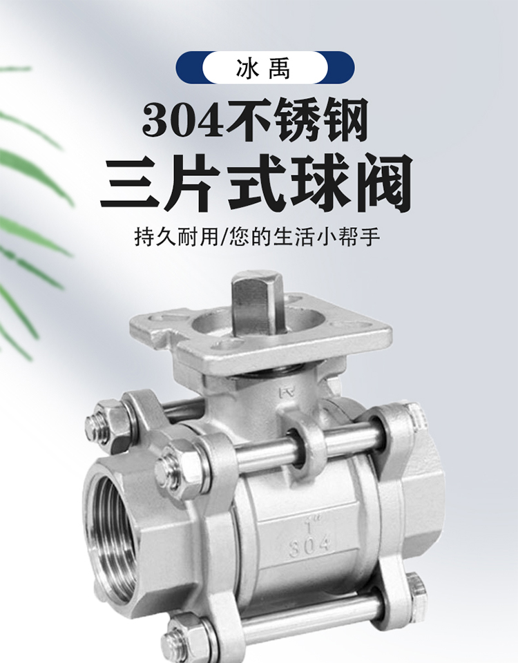 - Nombre del producto: Válvula de bola de tres piezas de acero inoxidable 304 de Bingyu
