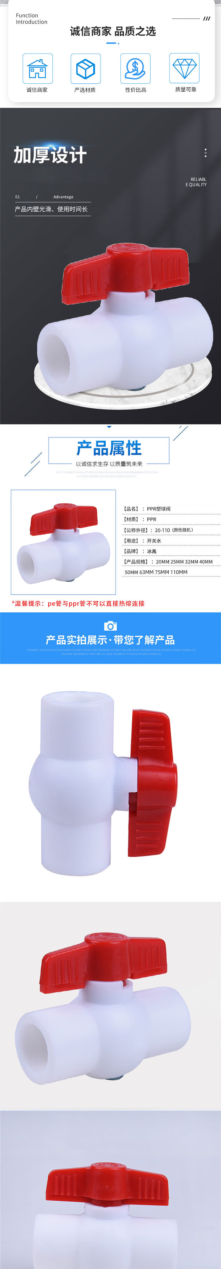 - Nombre del producto: Válvula de bola de polipropileno (PPR) Bingyu