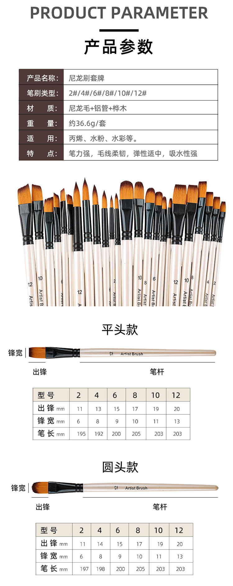 - Nombre del producto: Pincel de nailon para acuarela y óleo con efecto salpicado