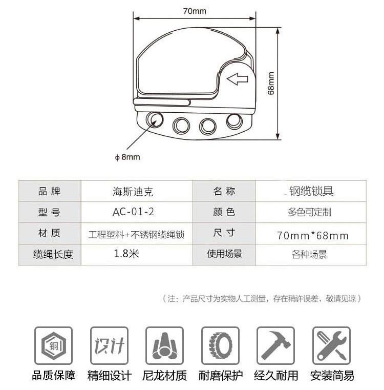 - Nombre del producto: Candado de cable de acero universal ajustable Haisdick