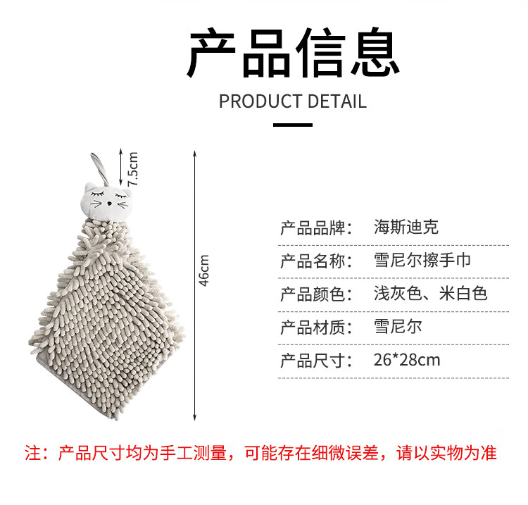 - Nombre del producto: Toalla de mano de chenilla colgante Haisdick