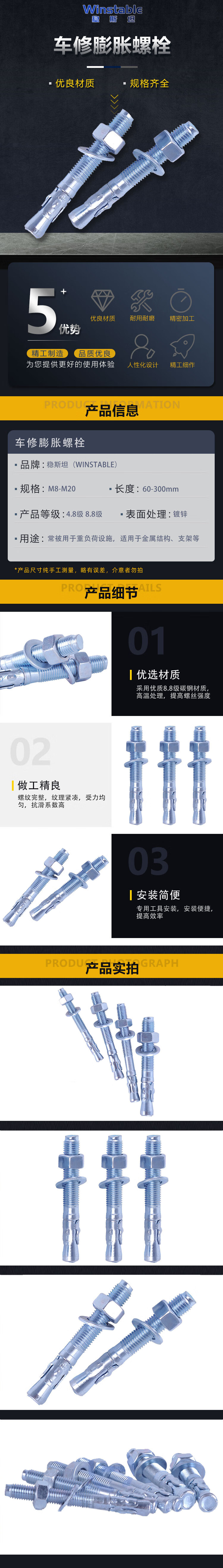- Nombre del producto: Pernos de expansión Winstein para reparación de automóviles