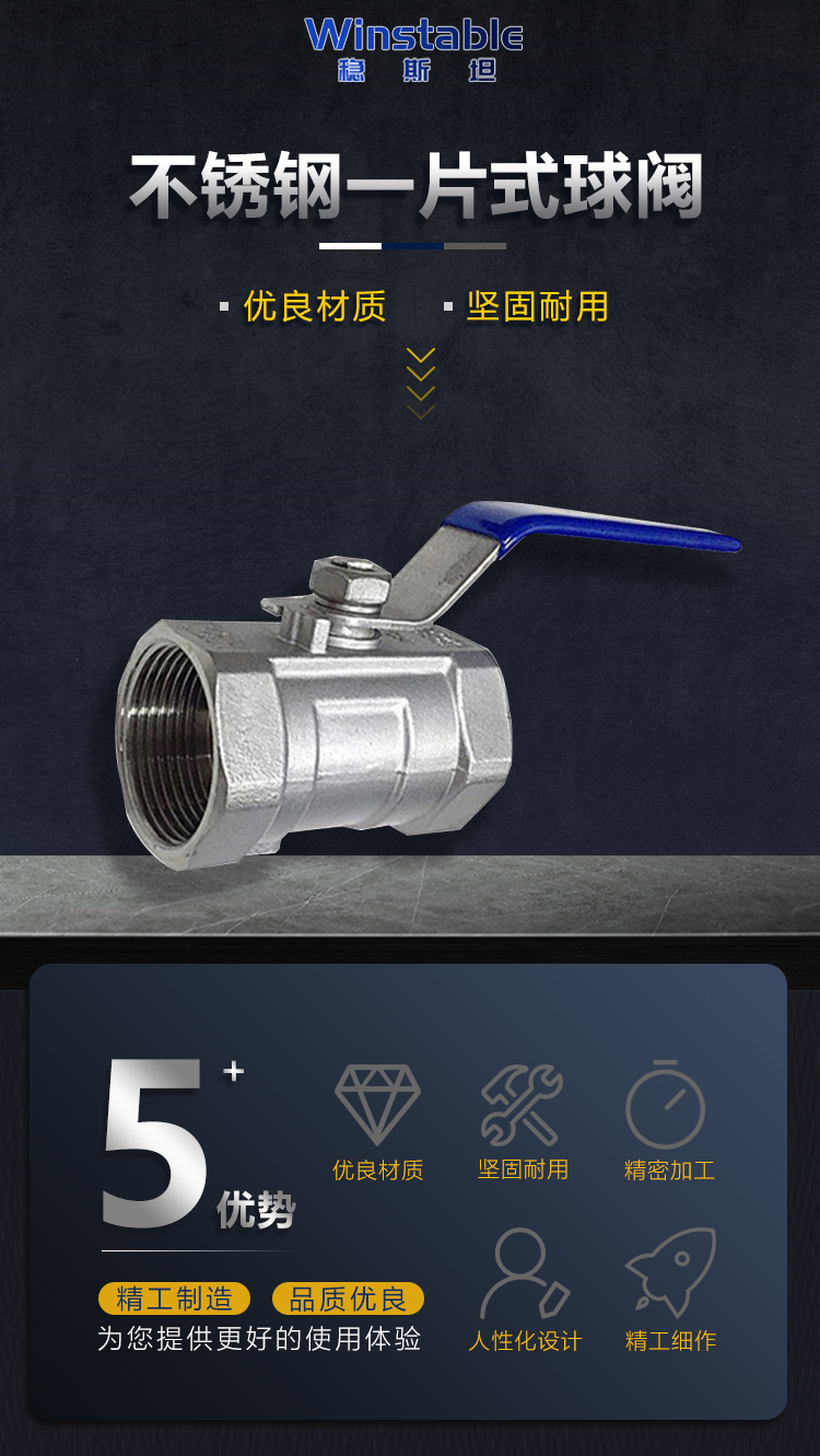 - Nombre del producto: Válvula de bola de una pieza de acero inoxidable Winstein 304