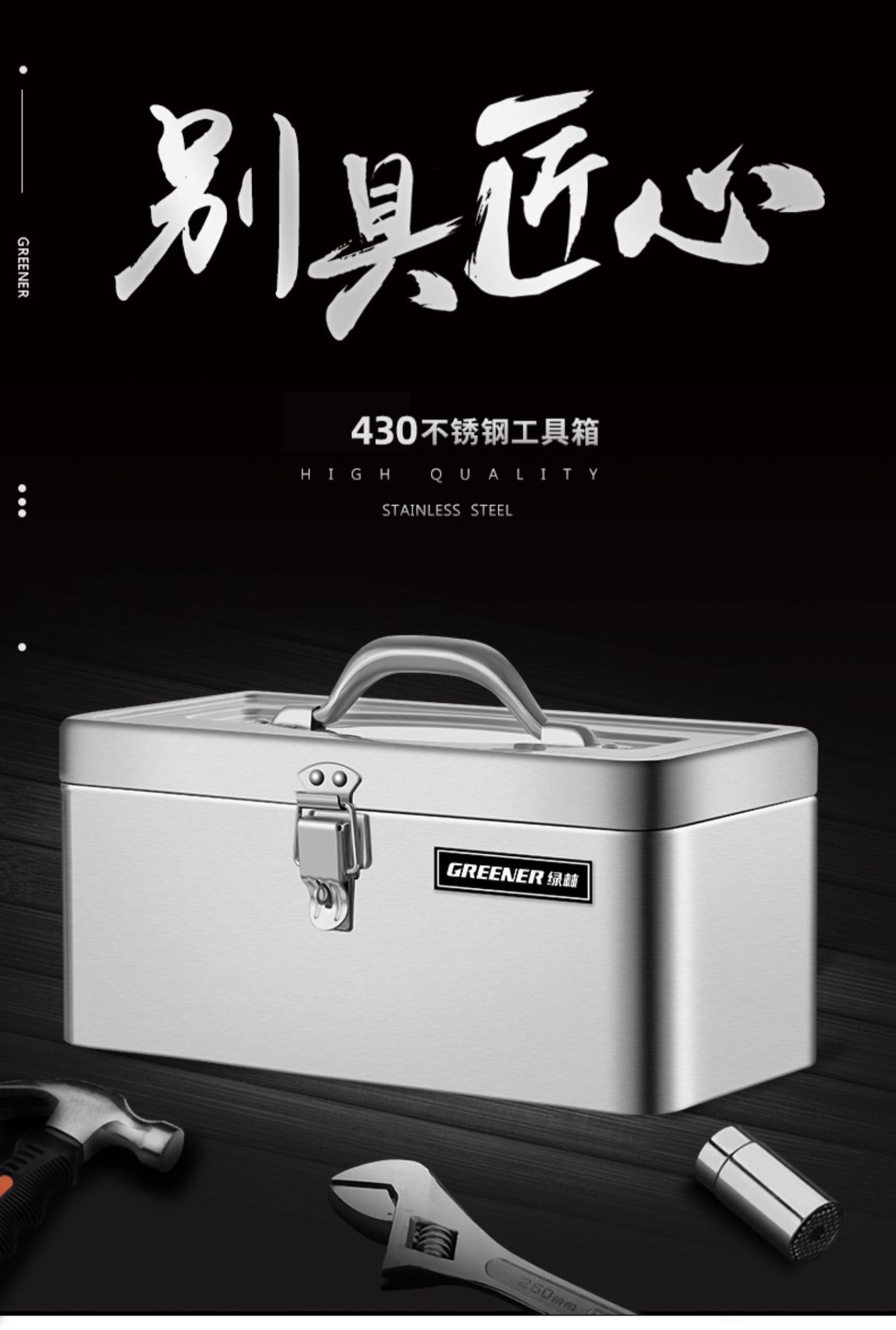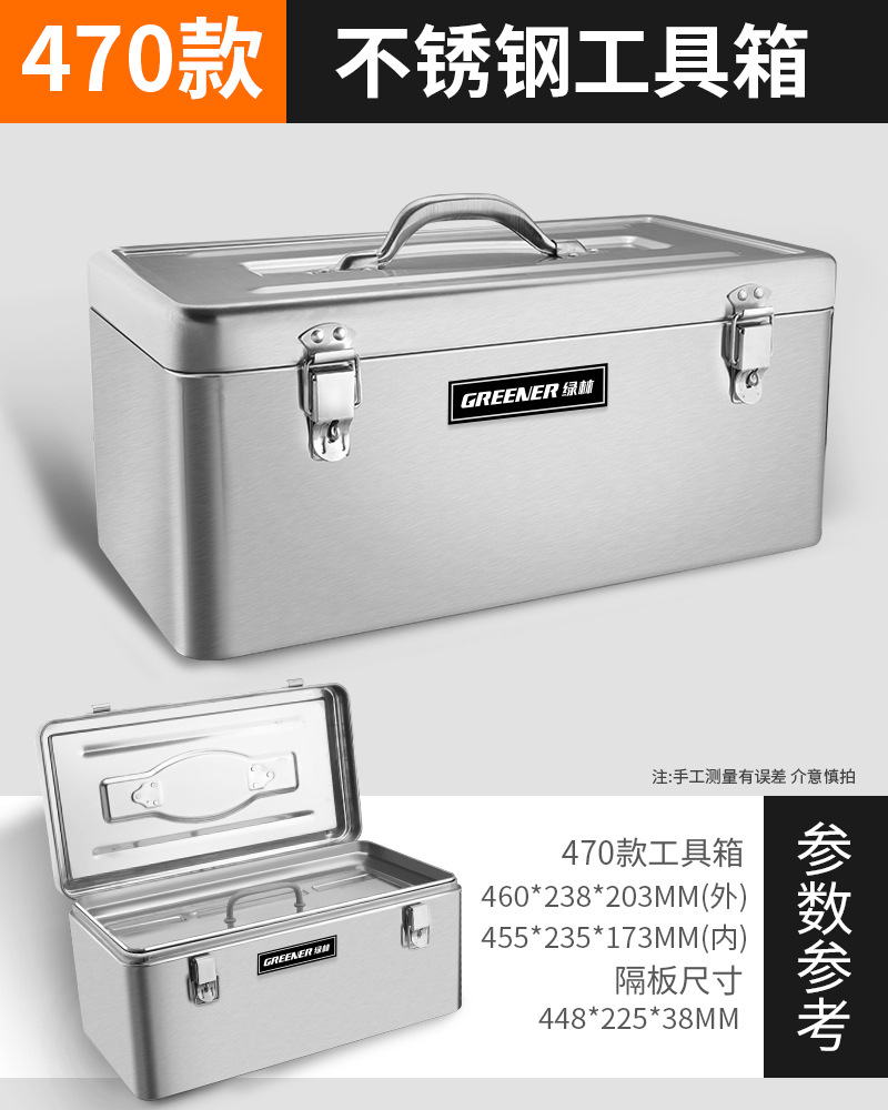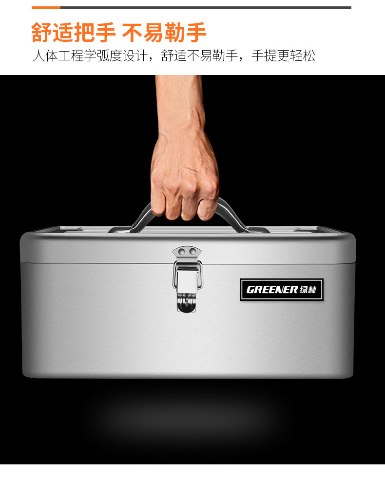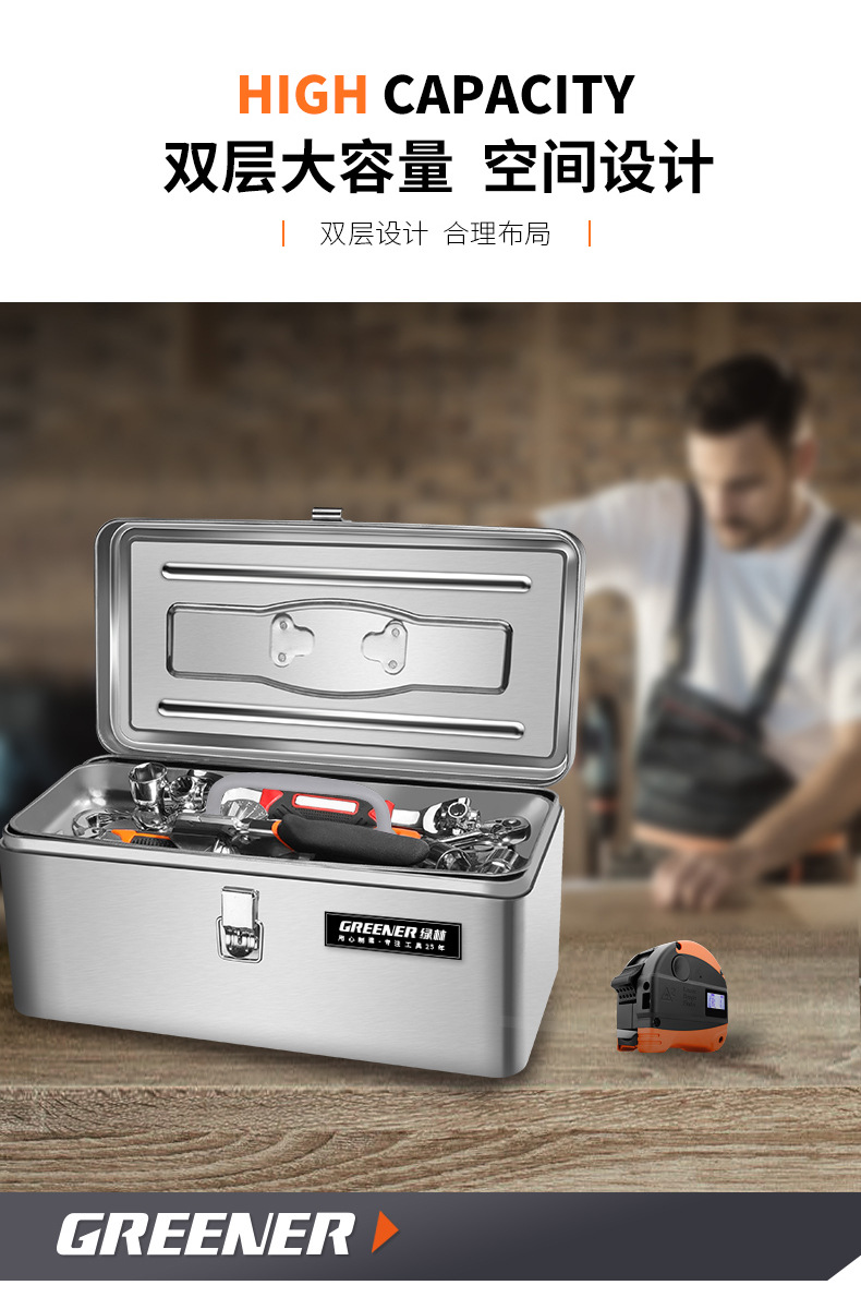 - Nombre del producto: Caja de herramientas de acero inoxidable Green Forest