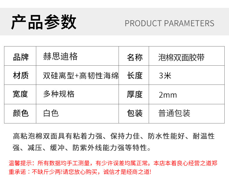 - Nombre del producto: Cinta de espuma de doble cara Hester