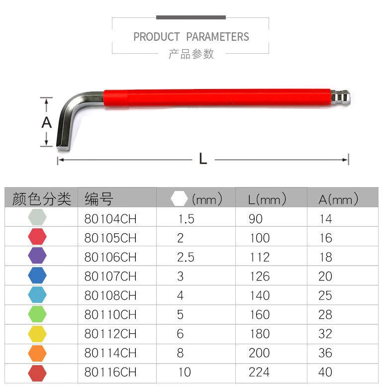 - Product Name: Shida Rainbow Series Extra Long Ball Head Hex Wrench Set