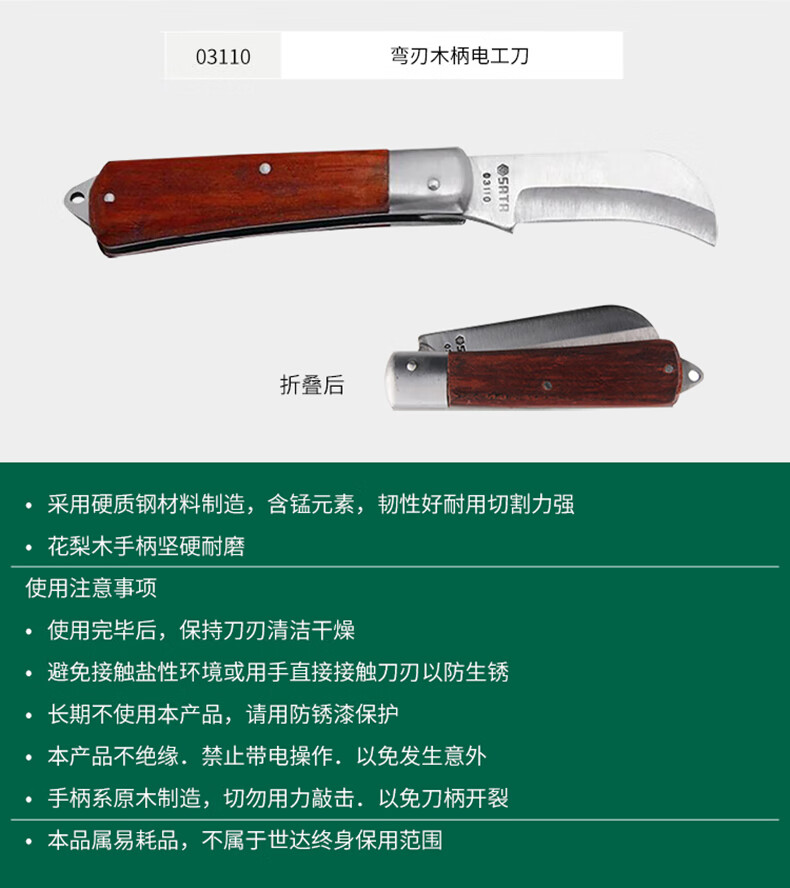 - Product Name: Shida straight blade wooden handle electrician's knife