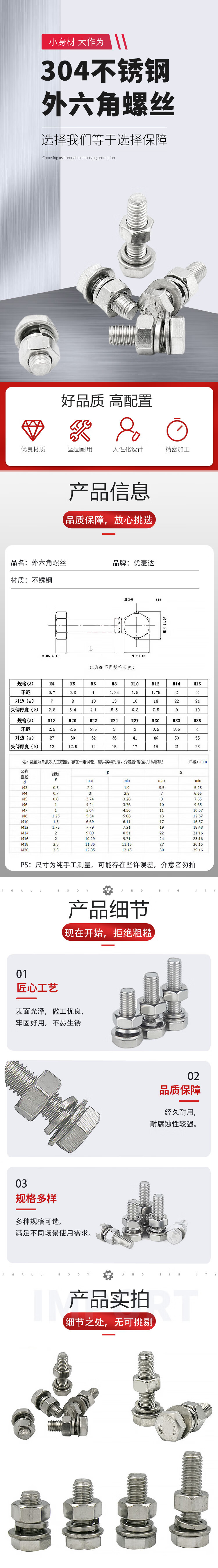 - Product Name: Umaida 304 stainless steel hexagon screw four-piece set