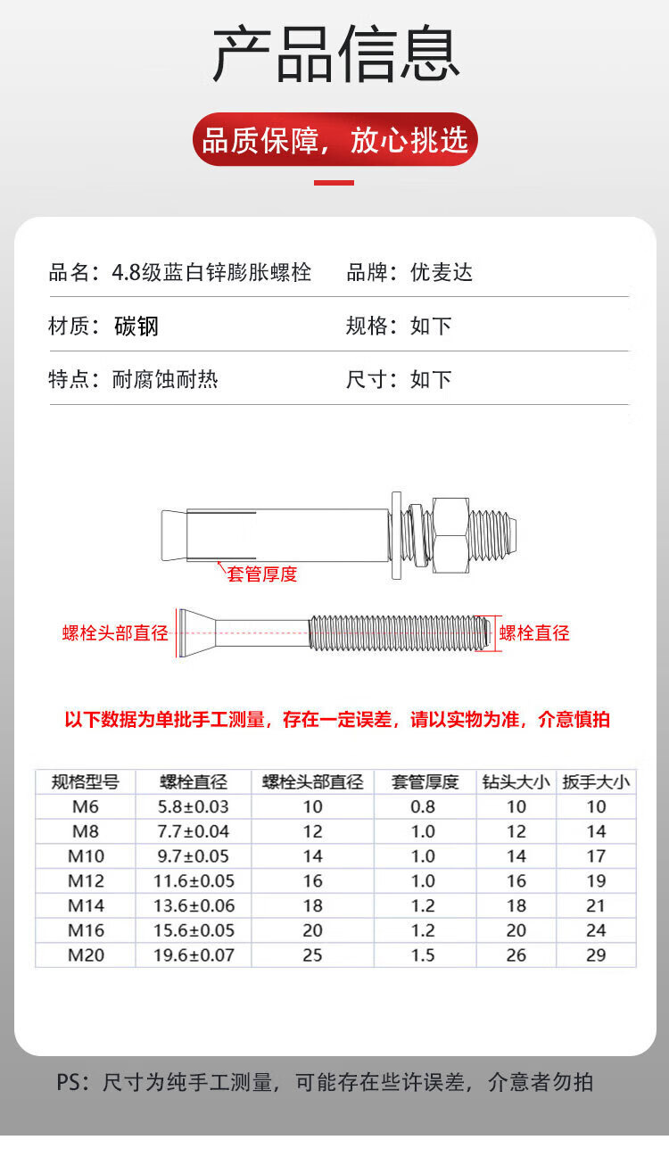 - Product Name: Umaida 4.8 grade blue and white zinc-plated expansion bolts