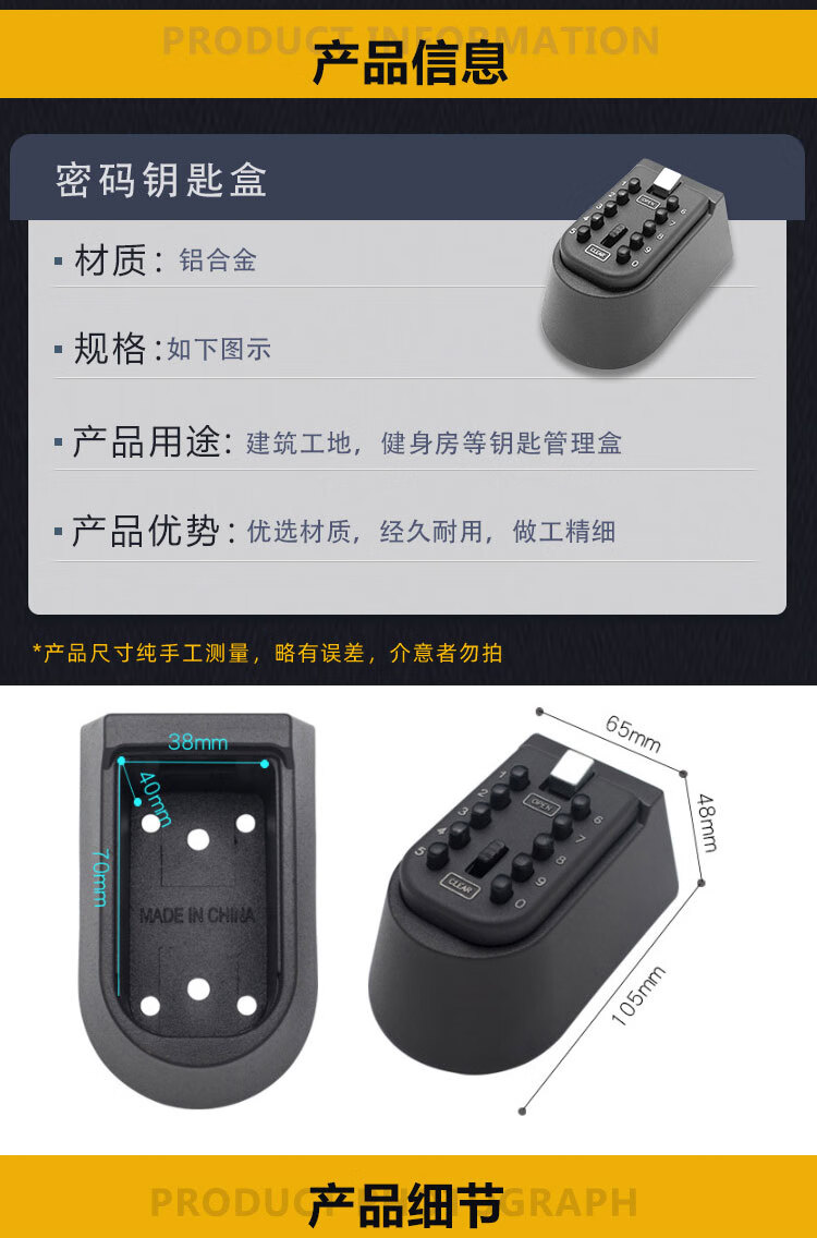 - Product Name: Bingyu Wall-mounted Button Password Key Box