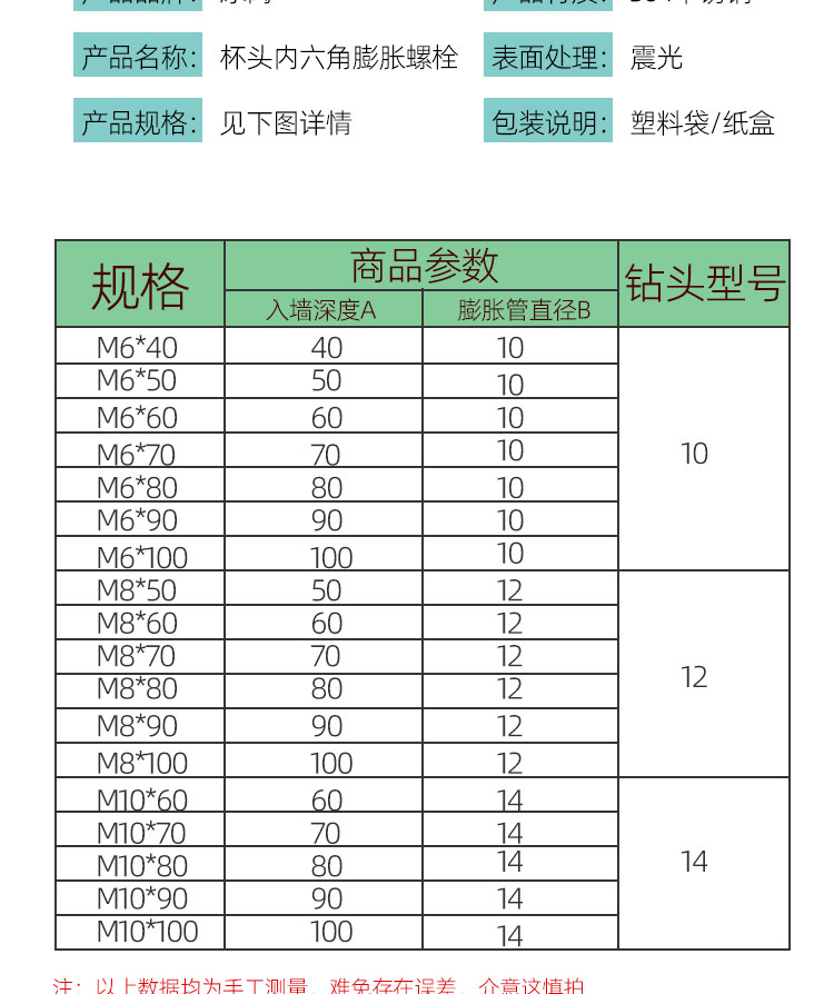 - Product Name: Bingyu Cup Head Hexagon Expansion Screw