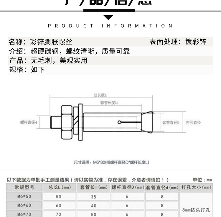 - Product Name: Bingyu Colored Galvanized Expansion Bolts