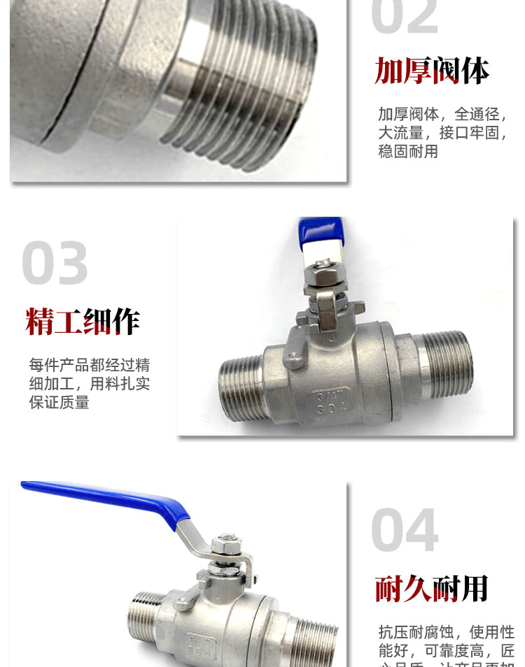 - Product Name: Bingyu 304 Stainless Steel Two-Piece Double External Thread Ball Valve