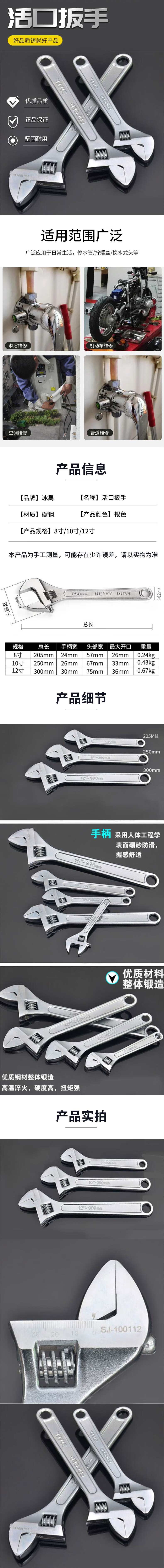 - Product Name: Bingyu 45 steel adjustable wrench
