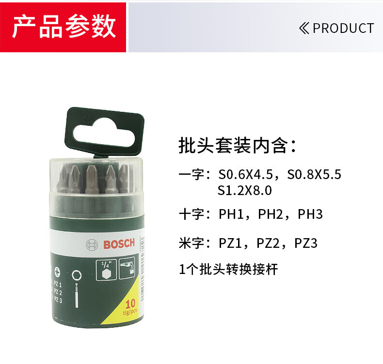 - Product Name: Bosch (BOSCH) 10-piece screwdriver bit set household grade