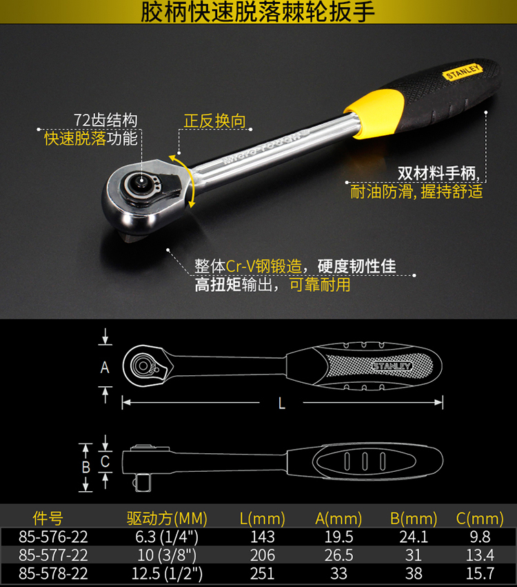 - Product Name: Stanley 6.3MM Series Rubber Handle Quick Release Ratchet Wrench