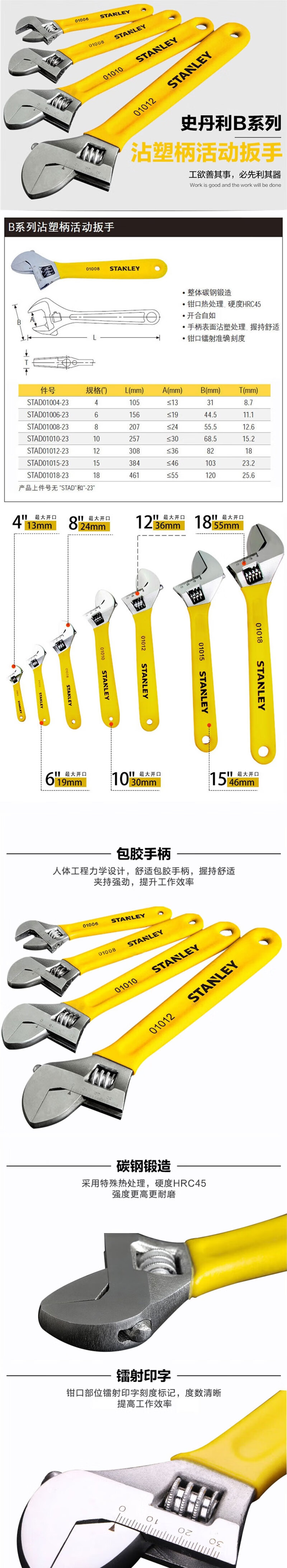 - Product Name: STANLEY B Series Adjustable Wrench with Plastic Handle