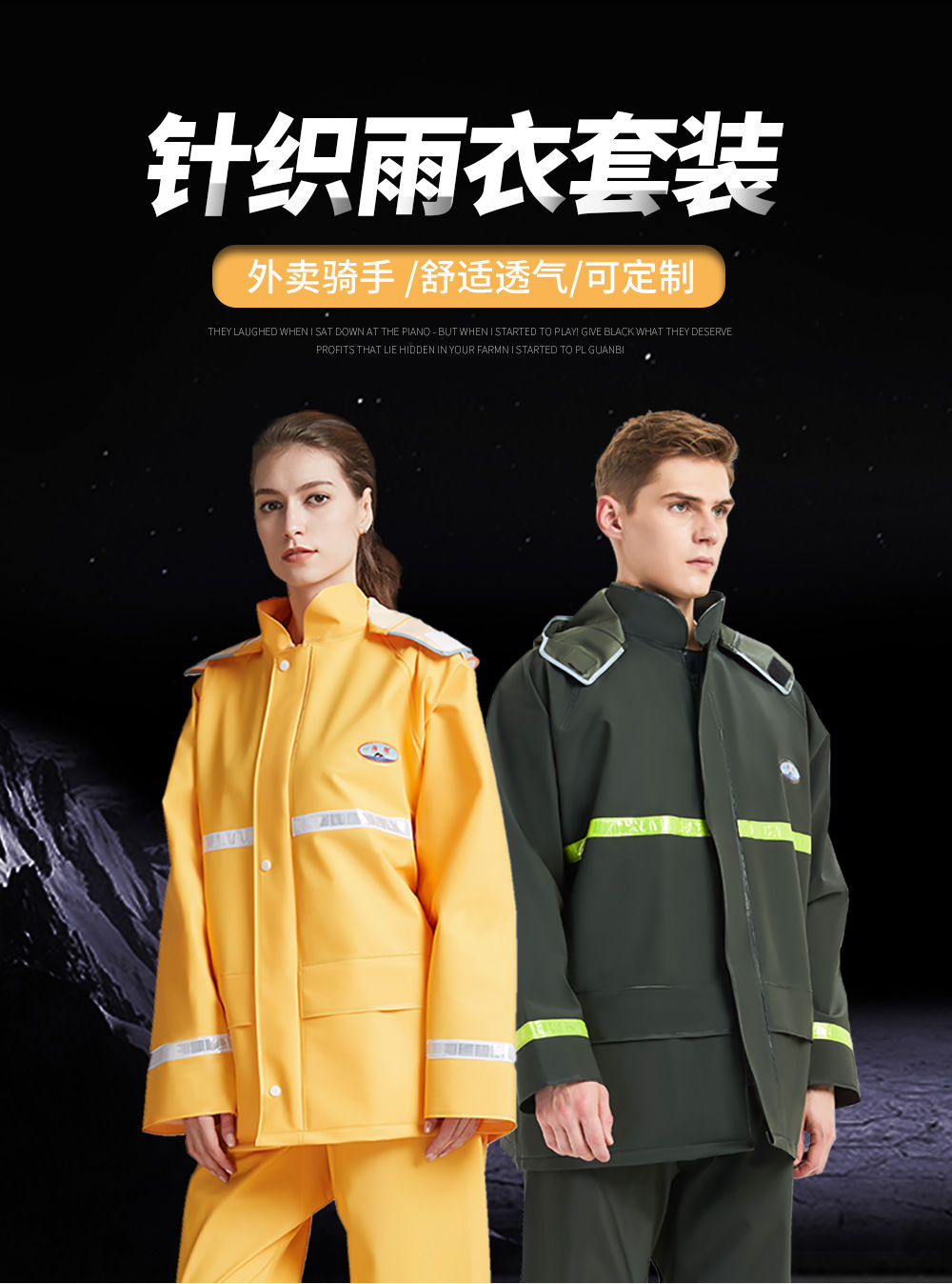 Haixiang raincoat rain pants hooded reflective suit knitted fabric