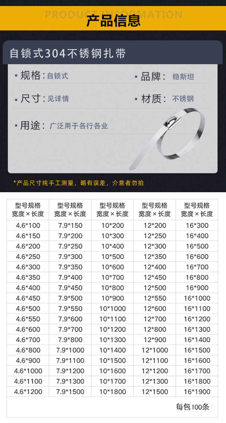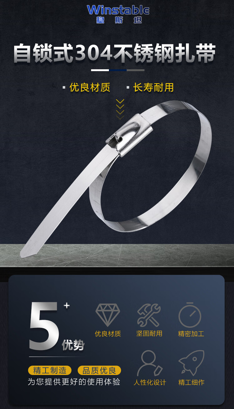 - Product Name: Winsteel Self-Locking 304 Stainless Steel Cable Ties