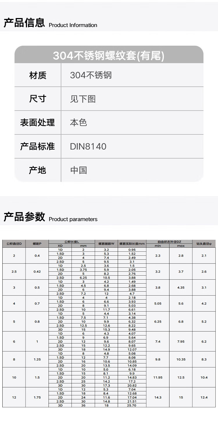 - Product Name: Winstein 304 stainless steel threaded sleeve (with tail)