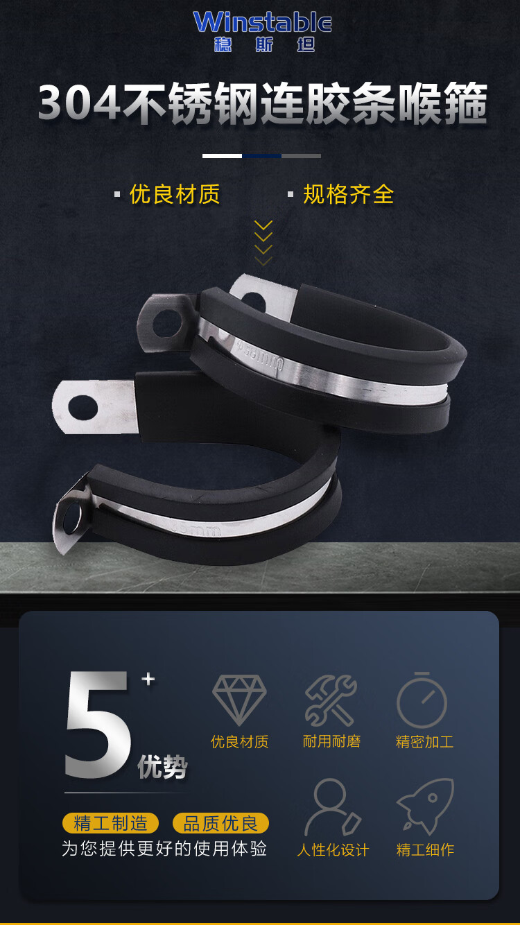 - Product Name: Winstan 304 stainless steel hose clamp with rubber strip