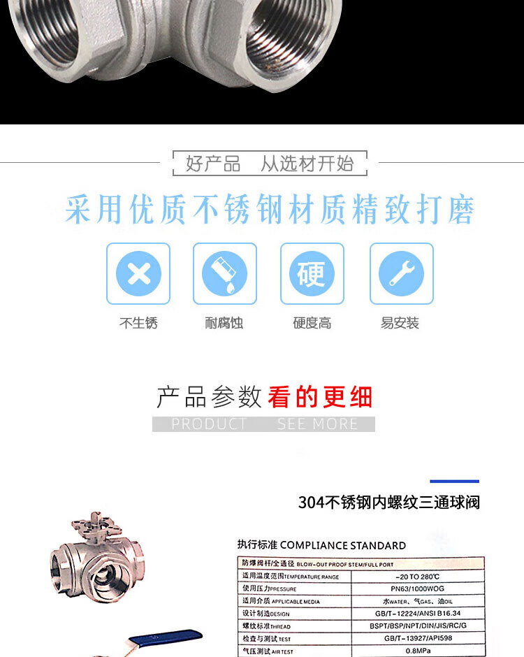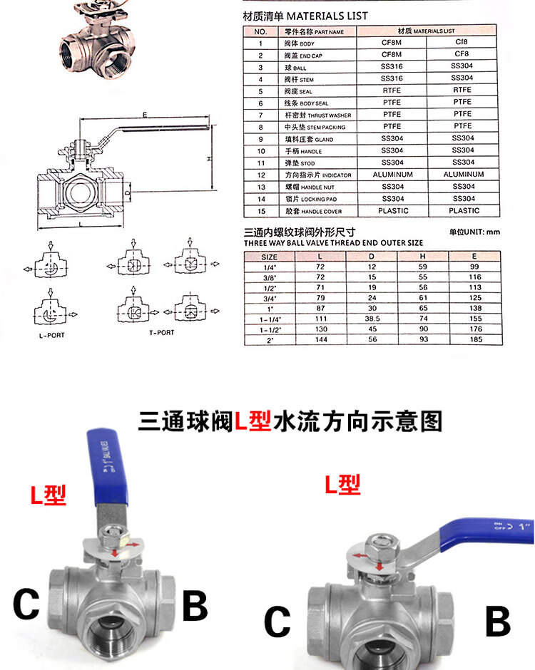 - Product Name: Winstable 304 Stainless Steel Three-Way Threaded Ball Valve