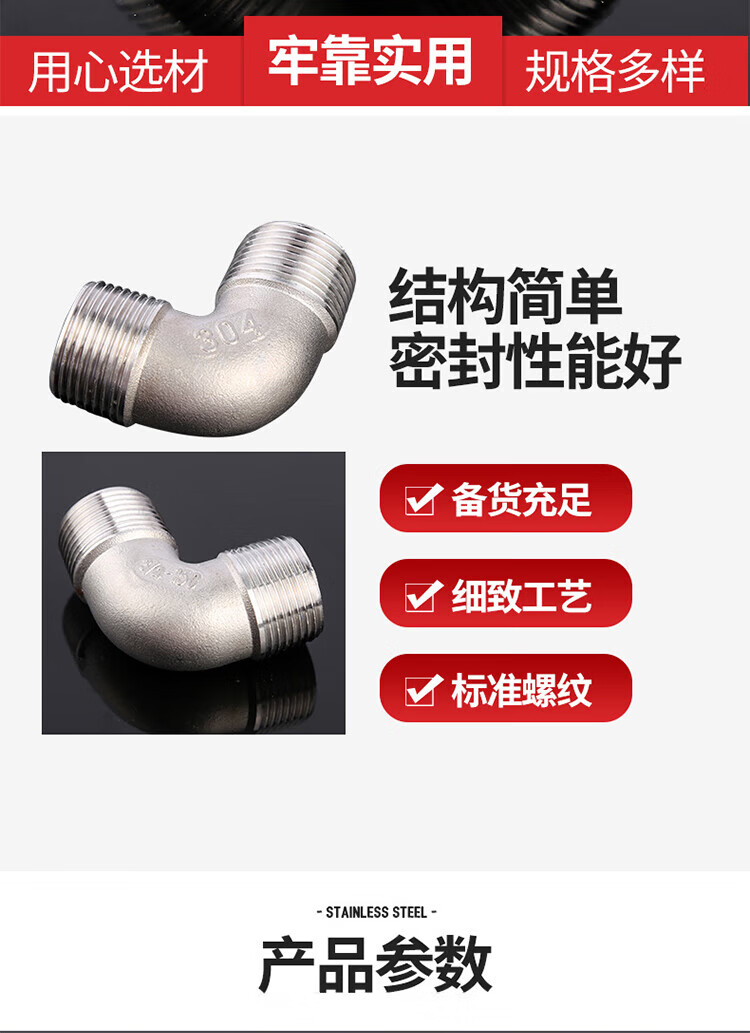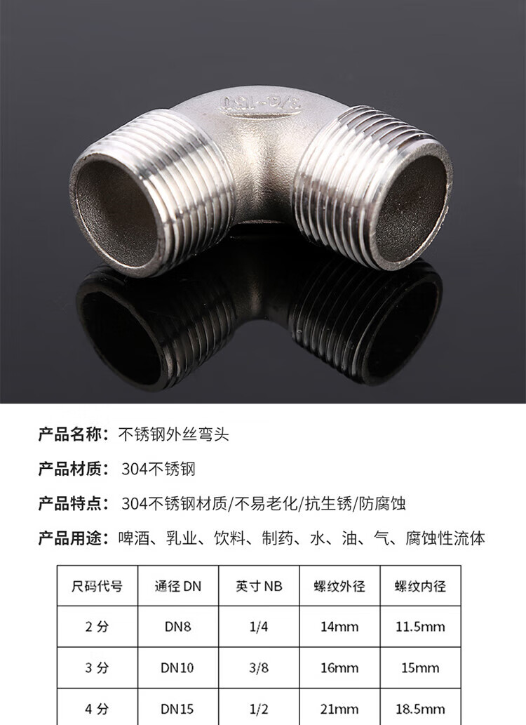 - Product Name: Winstable 304 Stainless Steel Double External Thread Elbow