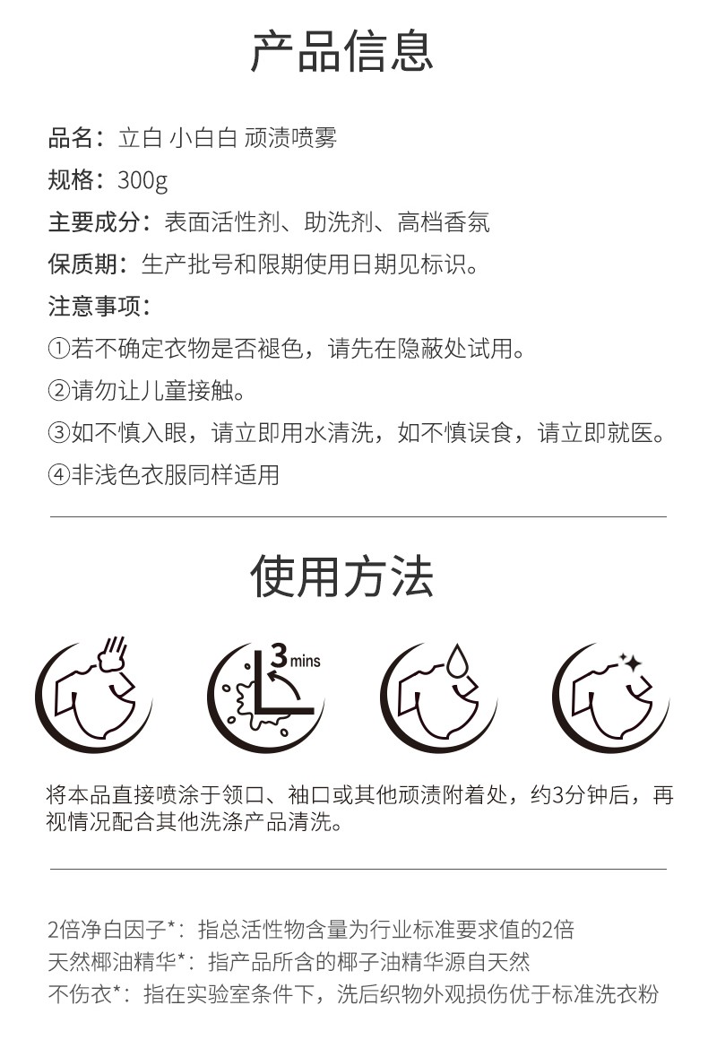 - Product Name: Libai Xiaobai Clean Laundry Detergent Spray 300g