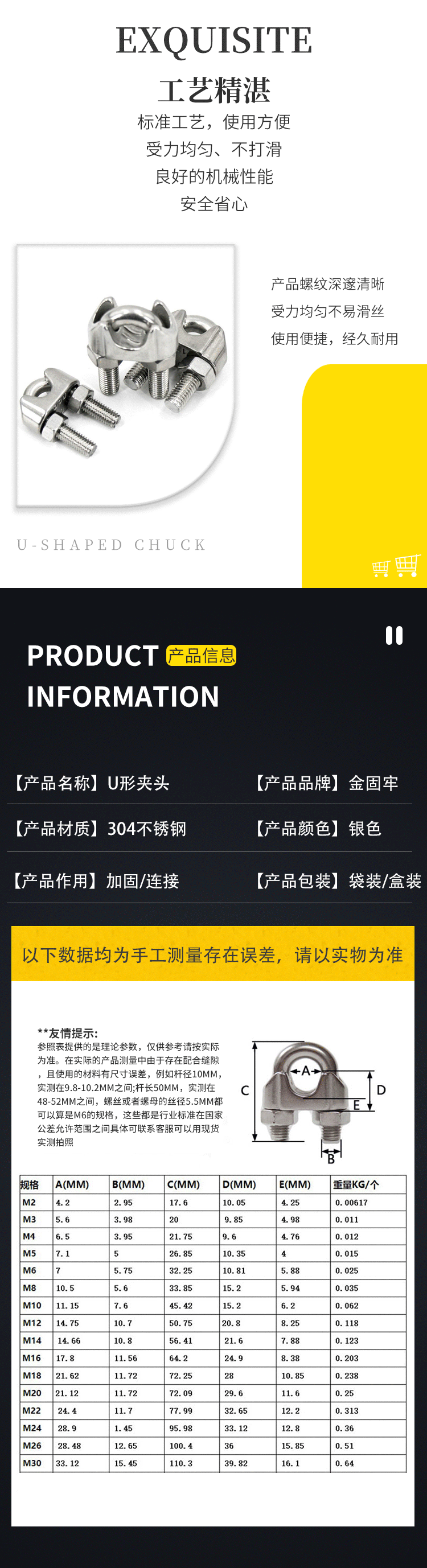 - Product Name: Jinguluo 304 stainless steel U-shaped chuck