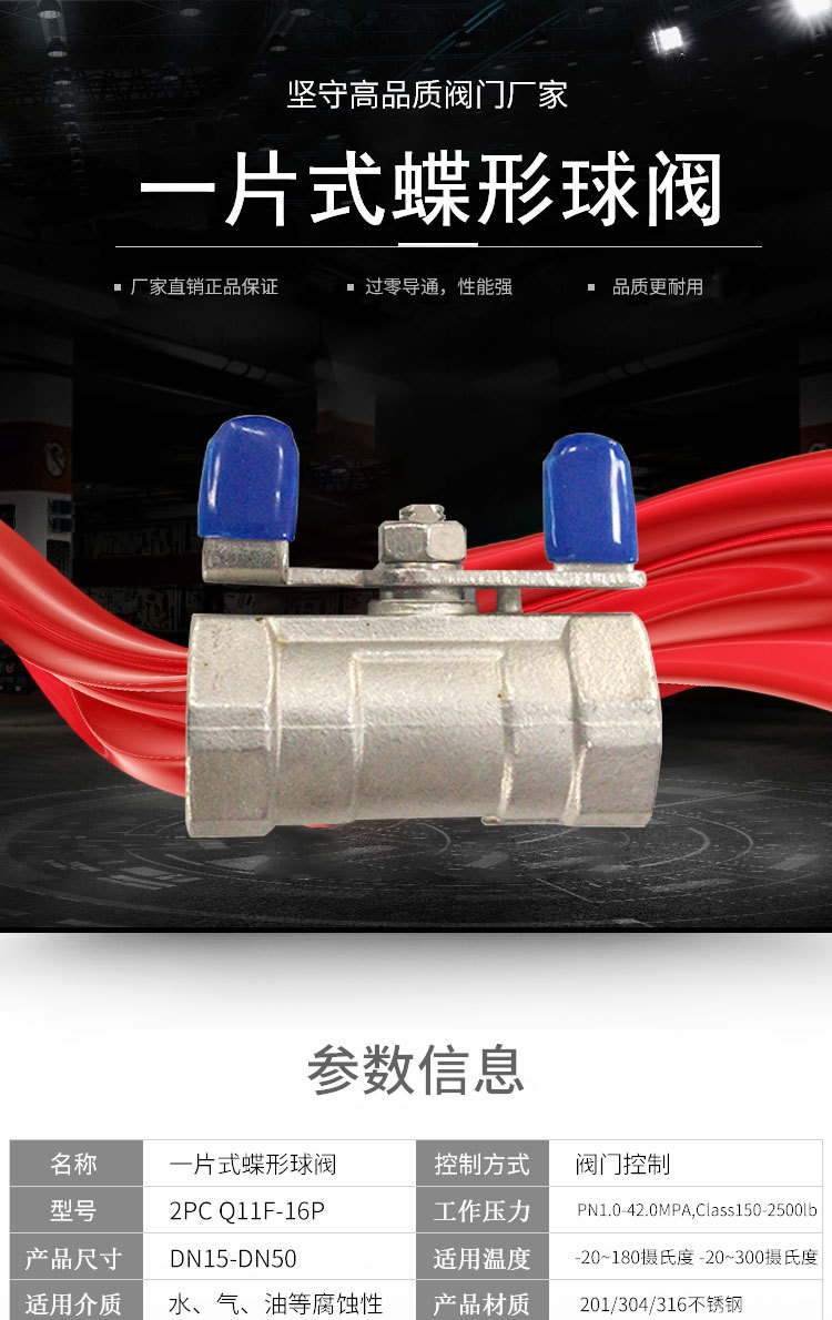 - Product Name: 304 Stainless Steel One-Piece Butterfly Ball Valve