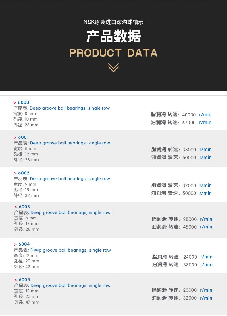 - Product Name: NSK Deep Groove Ball Bearings with Dustproof Iron Covers on Both Sides